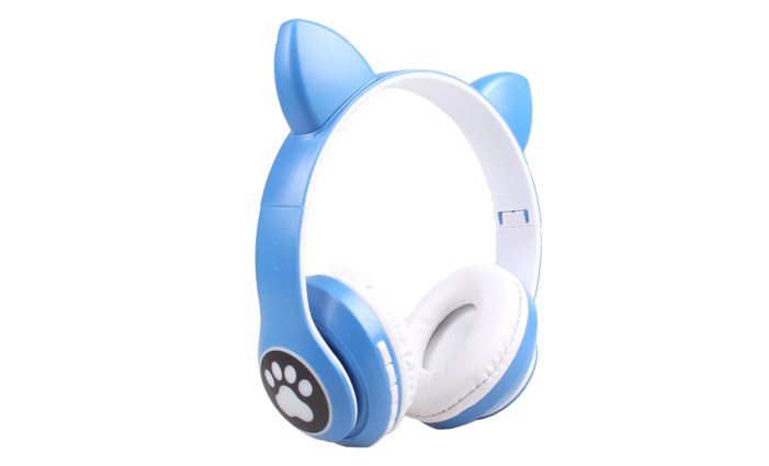 Bezdrátová sluchátka s kočičíma ušima modrá