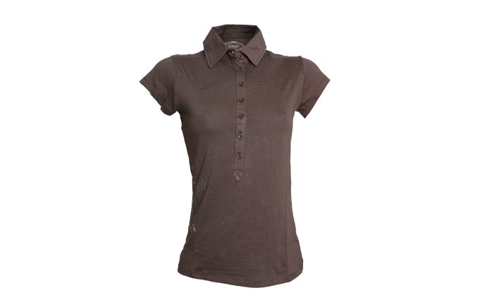 Dámské tričko s krátkým rukávem v hnědé barvě.