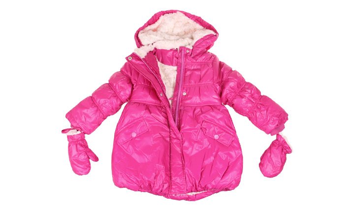 Zateplená dívčí bunda s vnitřním kožíškem a rukavičkami.