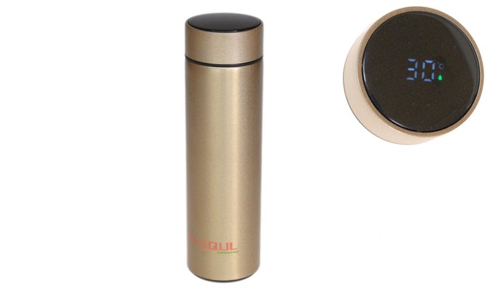Nerezová termoska s LED displejem matná zlatá