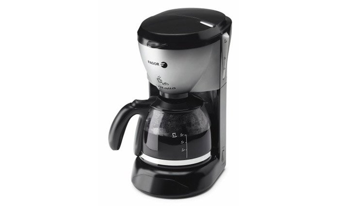 Černostříbrný překapávač Fagor CG 406 se stálým, permanentním nylonovým filtrem ve výbavě.